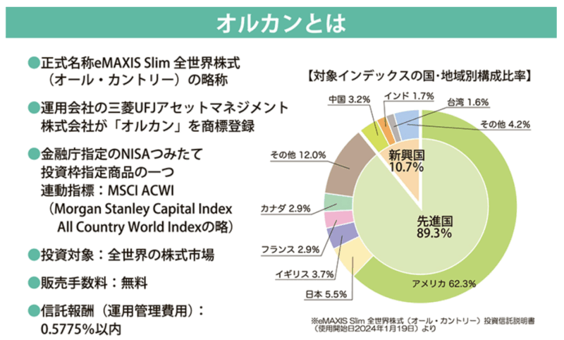 で、どちらも手数料はほとんど変わらないので、迷った結果、オルカンを選ぶことにしました。理由は僕自身が米国株式の個別銘柄に金融資産の7割近くを割いていたため、なんとなくバランスを取ろうとしたからです。