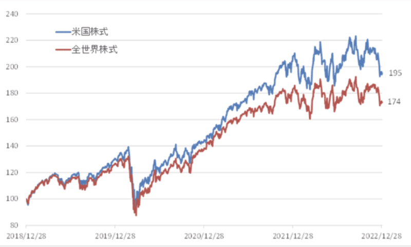 いやそうなんだよね。まぁ冒頭の図の通りオルカンの内6~7割が米国株なわけでリターンは似てるのだけど、その分アメリカ以外の国の成長ってアメリカに及ばないわけで・・・そもそもリスクのある金融資産に投じる以上どこの国に投資されて資産が凍結されようが、高いリターン出す先に入れる方が得なのではないか。